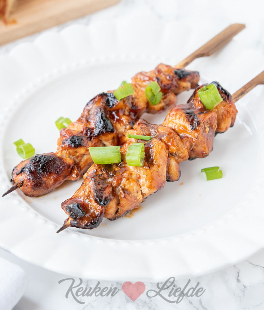 Deze kipspiezen zijn gemarineerd in barbecuesaus voor een heerlijke smaak. Tijdens het grillen worden ze nog een keer ingekwast met barbecuesaus. Zo krijgen ze een verrukkelijk sticky laagje!