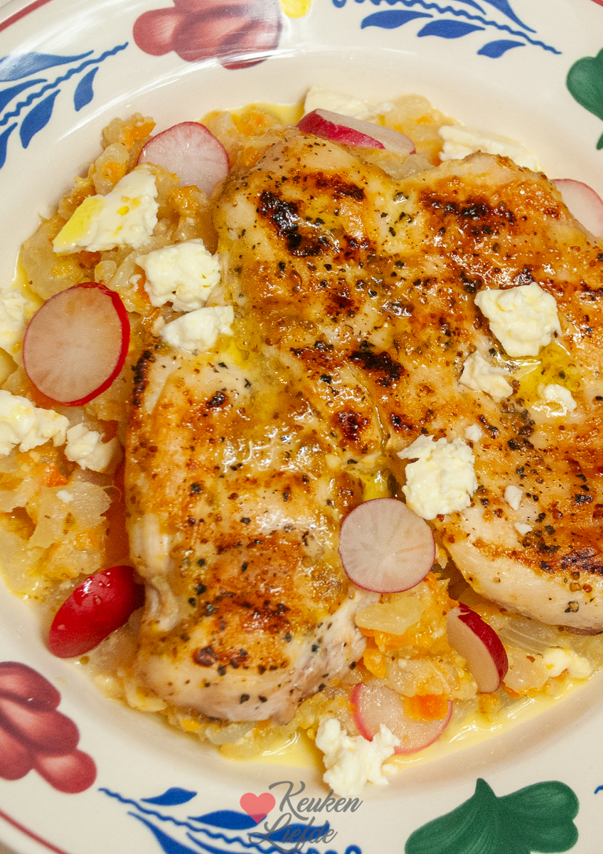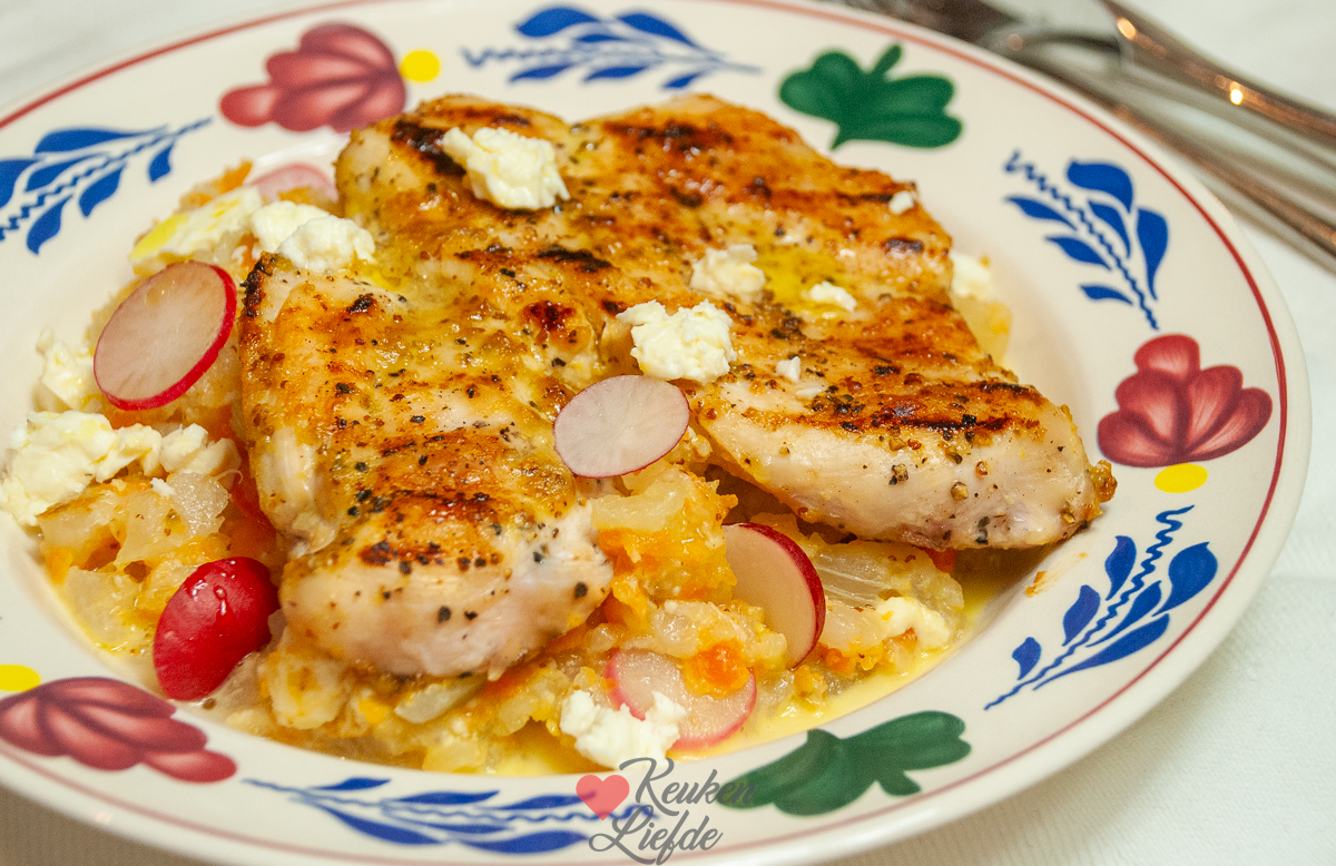 Een goed idee, want deze koolrabistamppot met bospeentjes en gegrilde honing-mosterdkip is echt om van te smullen! Ik voeg ook wat fetakaas toe omdat ik die in huis had, maar laat deze gerust achterwege als je geen liefhebber bent. Dit gerecht is ook Paleo-proof.