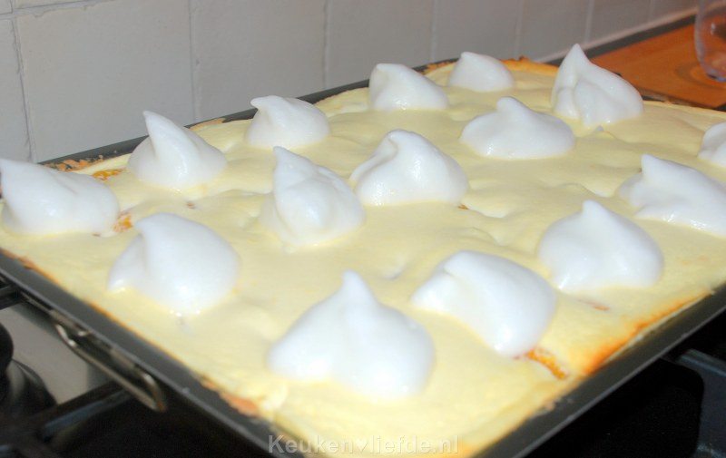 Hoi Janneke, het is alweer even geleden dat ik deze taart gemaakt heb maar zo te zien op de foto’s heb ik een groot en wat dieper bakblik gebruikt, zeker geen kleine vorm. De meringue was bij mij ook ingezakt, dus die mag idd best wat langer in de oven op lagere temperatuur. Ook heb ik hem volgens mij niet stijf genoeg geklopt voordat hij de oven inging. Hoog tijd dat ik deze taart nog maar eens ga maken een een 2.0 versie met jullie ga delen! 😉 Hopelijk heeft hij wel goed gesmaakt Janneke! 🙂