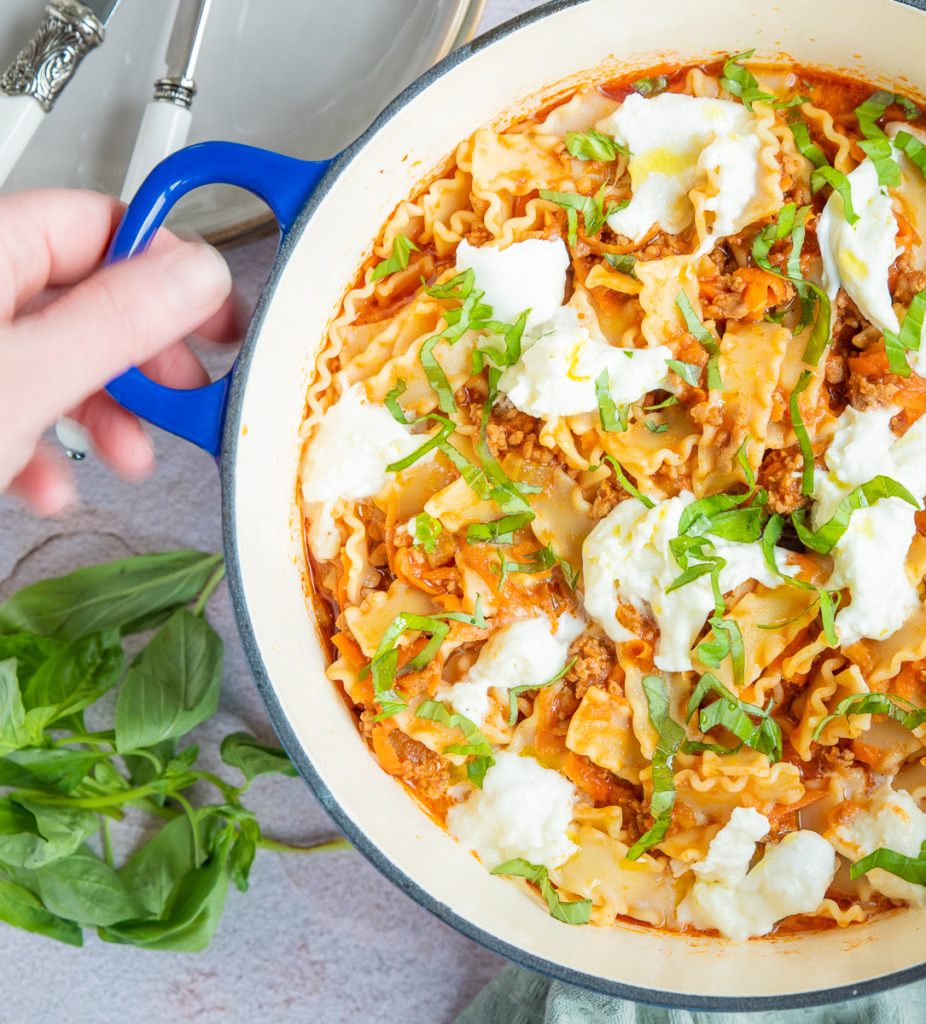 - Bosje verse basilicum, blaadjes opgerold en fijngesneden (houd wat hele blaadjes achter voor garnering)