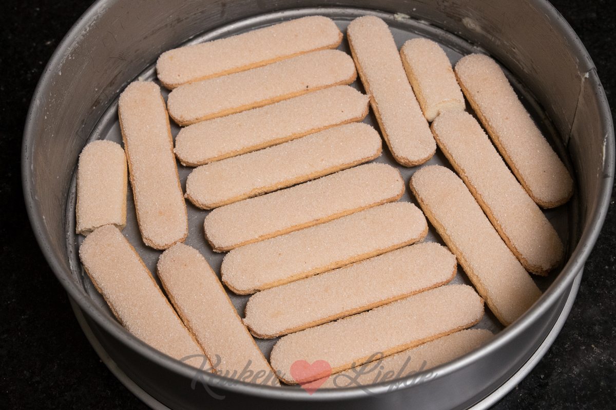 Als de taart helemaal stijf is kun je de taart draaien, heb je de lange vingers alsnog als bodem