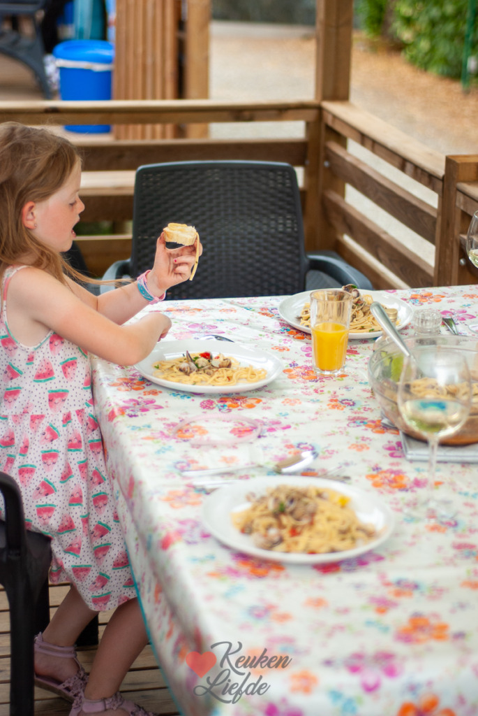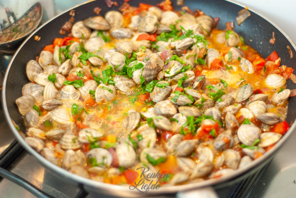 Met weemoed denk ik terug aan deze linguine alle vongole die ik maakte op de camping in Italië. Wat is Italië toch een heerlijk vakantieland. Tijdens een uitstapje naar de plaatselijke supermarkt ontdekte ik de visafdeling waar een zakje verse vongole (ook wel venusschelpen genoemd) op mij lag te wachten. Ik wist direct wat ik daarmee wilde maken: linguine alle vongole! Een eenvoudig en heerlijk gerecht dat in luttele minuten op tafel staat.
