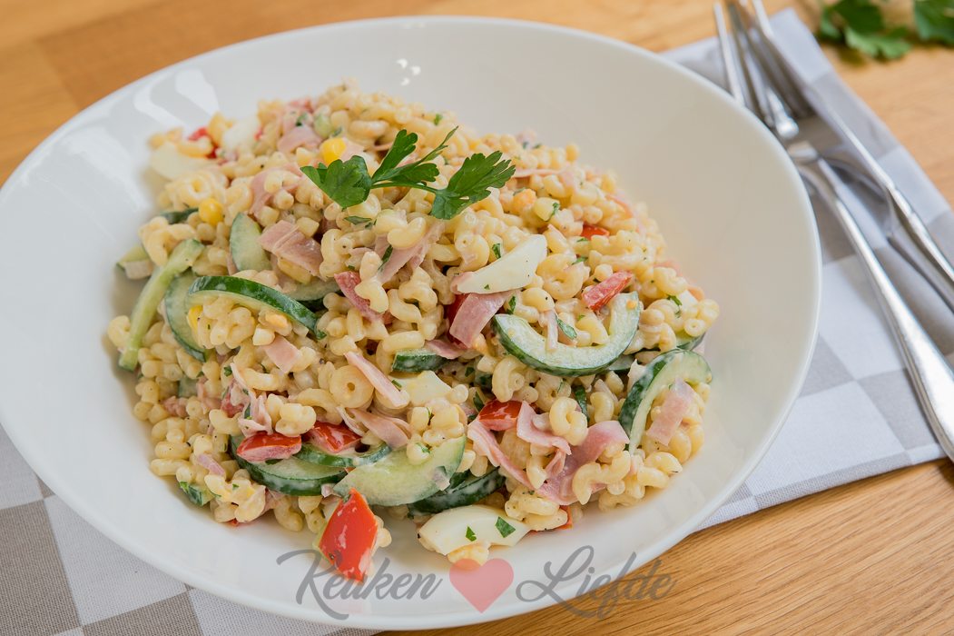 Macaronisalade met ham en komkommer (kookvideo!)