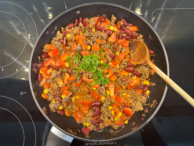 - Paar takjes peterselie of koriander, fijngehakt