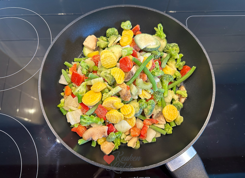 Ik kies dit keer voor gemak met kant-en-klare mezzelune. Deze is verkrijgbaar met verschillende soorten vulling. Kies de vulling die jezelf het lekkerst vindt. Volgens mij had ik een vulling met parmezaan en parmaham. Met een zak voorgesneden Italiaanse roerbakgroenten en een fles lekkere pastasaus zet je dit gerecht in 15 minuten op tafel. Lekker met een salade van rucola en veldsla, tomaatjes, rode ui, pijnboompitjes en parmezaan.