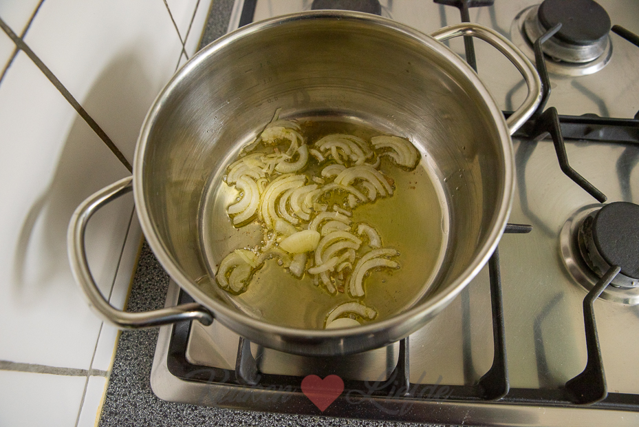 - 1 ui, gepeld en in halve ringen
