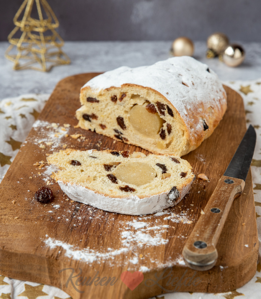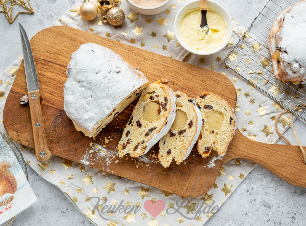 Hoi Petra, je kunt de amandelspijs even loskneden met een beetje losgeklopt ei, maar dit hoeft niet per se. Uiteraard kun je de rozijnen van te voren laten wellen in een beetje heet water of drank. Dan worden ze extra sappig en smakelijk. Ik zet het er nog even bij. 🙂