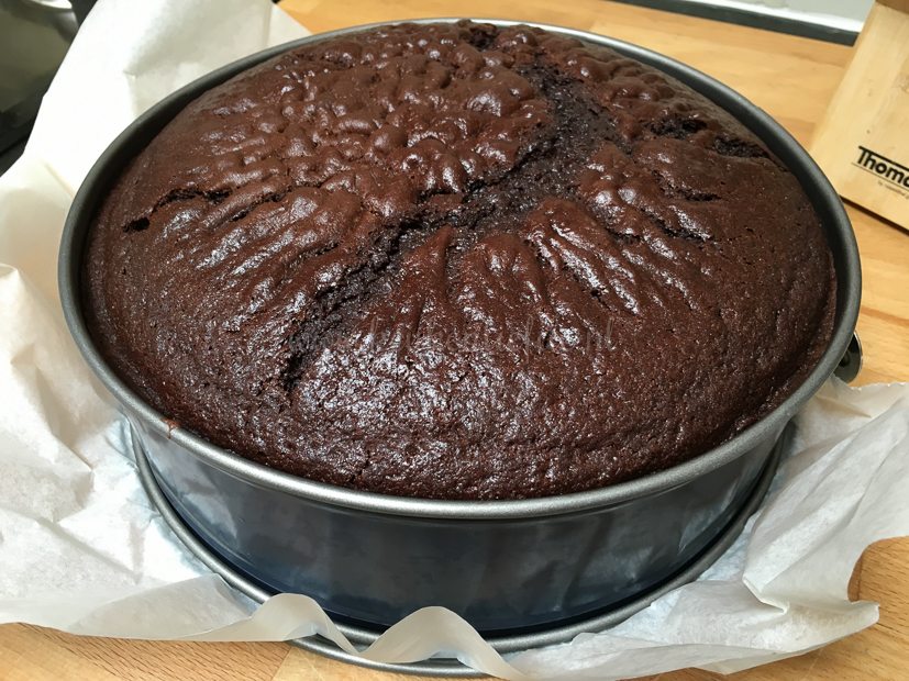 Ik keer de cake altijd om zodat de rechte onderkant de bovenkant wordt. Als ik dat doe als hij nog een beetje warm is, zakt hij vanzelf wel mooi horizontaal.