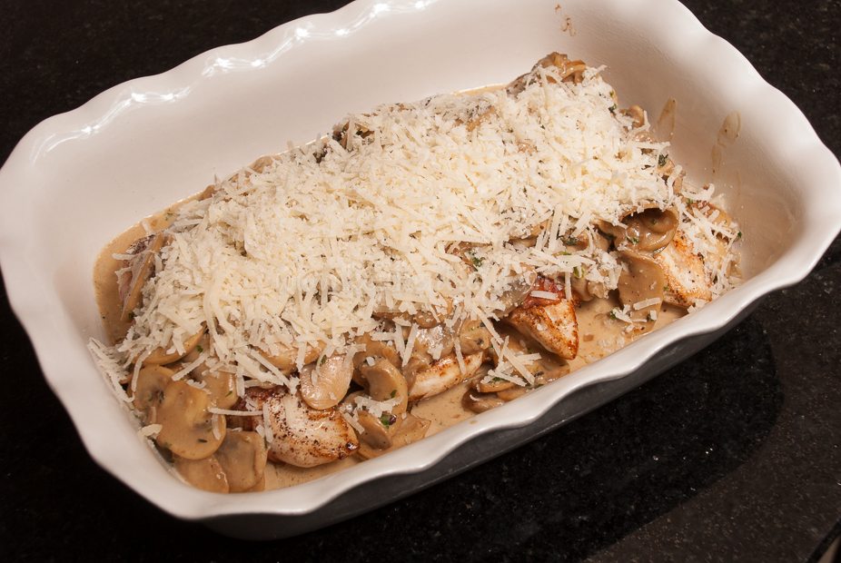 Was OVERHEERLIJK…zelfs mijn man, die niet zo van “crème” sausjes houd, vond het “een blijvertje”?? en om mijn eigen vraag te beantwoorden ? “hoelang moet het gerecht nog in de oven?” Ik had de kipfilets in de saus terug gelegd en met de deksel op de pan nog zo’n 20 minuten laten pruttelen. Daarna 10 minuten met de kaas in de oven! Perfect??
