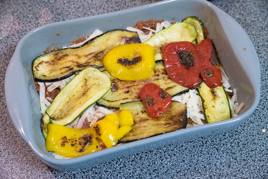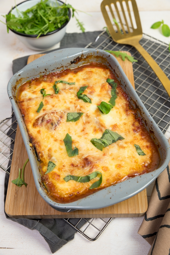 Deze ovenschotel met paprika, courgette en aubergine is vegetarisch en verrukkelijk. De basis lijkt erg op de Italiaanse aubergineschotel melanzane alla parmigiana maar dan met extra groenten. Door de groenten eerst te bakken (grillen kan ook) krijgen ze een rijke en volle smaak. Vervolgens doet de oven de rest van het werk! Je kunt deze schotel ook perfect van tevoren al maken zodat je hem ’s avonds als je thuis komt alleen nog maar in de oven hoeft te schuiven. Doe de kaas dan pas op de bovenkant voordat je hem de oven inschuift.