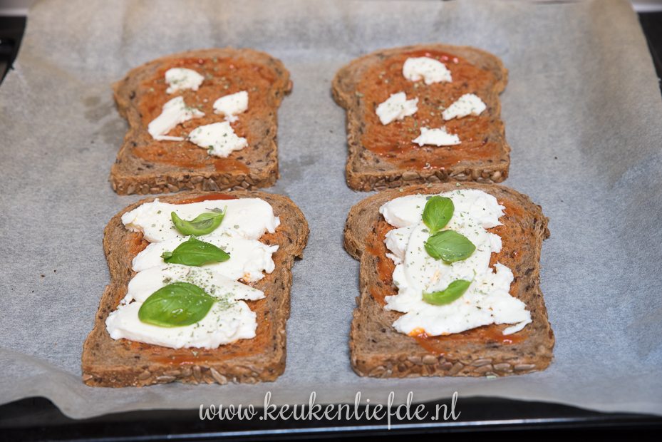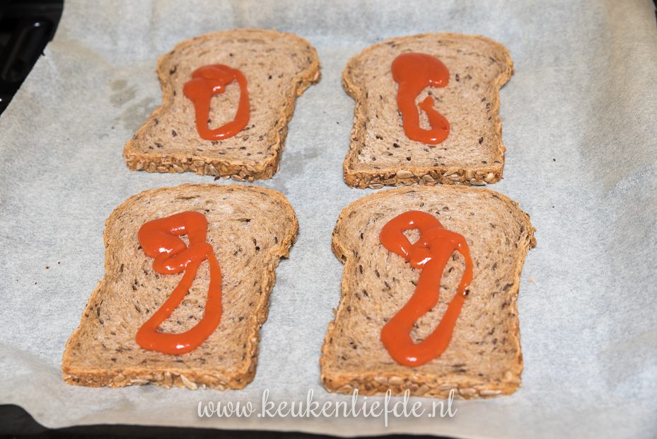 die.tomatensaus erop. Bij mij wordt de tosti in de oven gauw nogal droog.