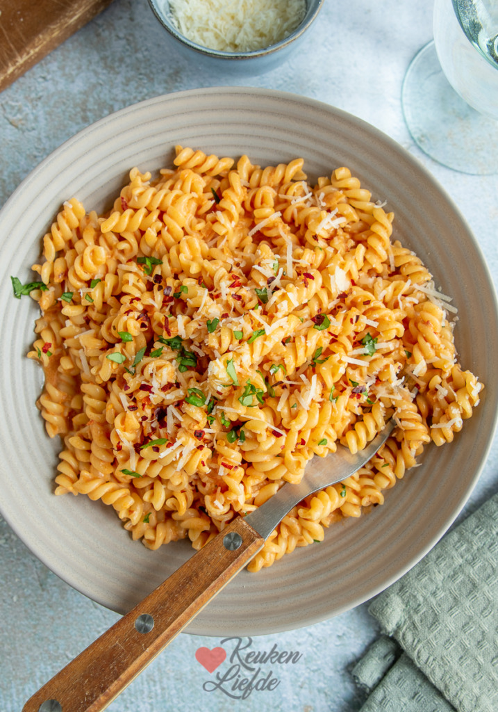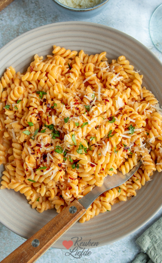 Het recept voor deze pasta in wodka-tomatenroomsaus deelde topmodel Gigi Hadid op haar Instagram Stories en werd een grote hit. Niet voor niks. Het recept is supersimpel en megalekker!