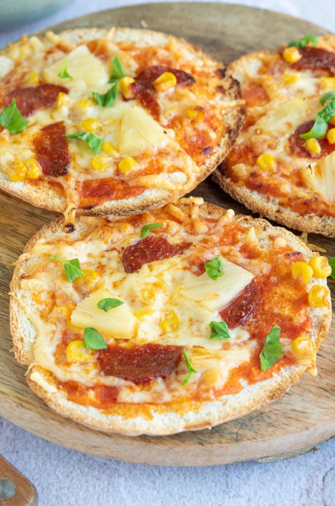 Met pitabroodjes tover je in een handomdraai iets lekkers op tafel. Je kunt ze natuurlijk vullen, maar ook opensnijden en beleggen als een pizza. Je krijgt dan een heerlijk krokante bodem! Deze pita pizza belegd met kaas, chorizo en ananas smaakt heerlijk als lunch, of serveer voor het avondeten met een kommetje soep erbij. Zie ook onderstaande tip.