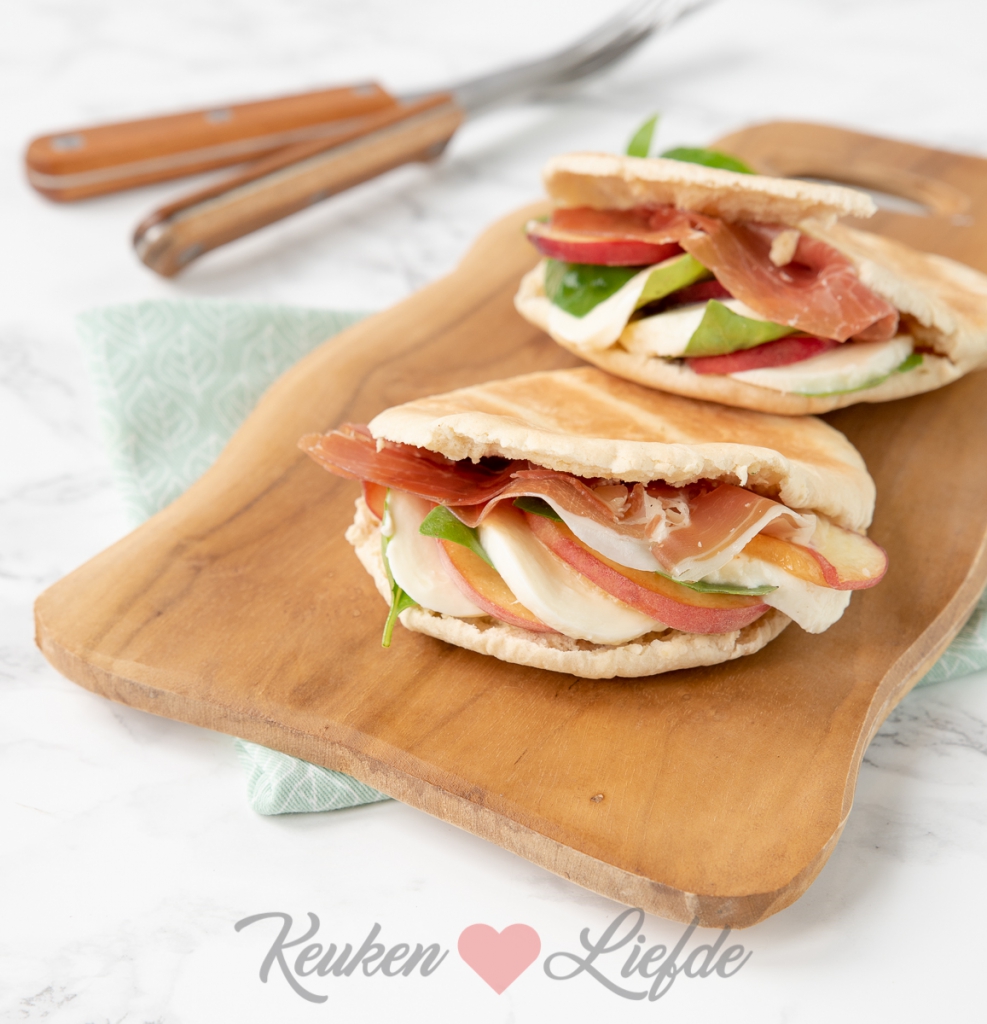 Zin in een lekkere lunch die snel op tafel staat? Ik heb altijd pitabrood in de kelder liggen om snel wat lekkers te maken. Gevuld met shoarma een heerlijke hoofdgerecht maar je kunt er ook een lekkere lunch mee maken. Dit pitabrood gevuld met mozzarella, perzik en Parmaham is een heerlijk lunchgerecht!