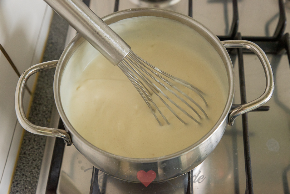 Bak circa 35 minuten in de oven, of tot de bovenkant goudbruin is.
