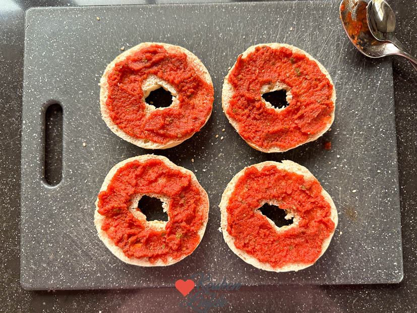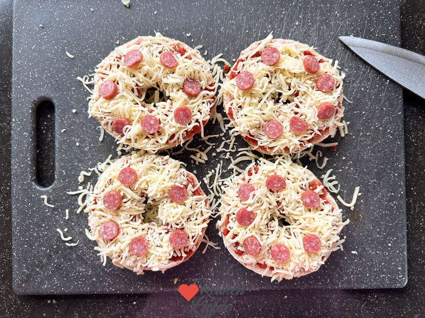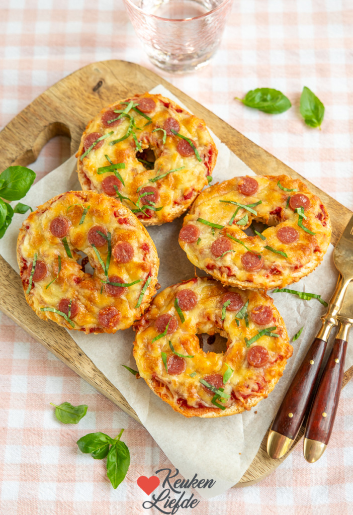 Pizza bagels. Een snel en lekker lunchrecept maken? Deze pizza bagels met salami maak je in 5 minuten tijd. Daarna hoef je ze alleen maar af te bakken in de oven of airfryer. Heerlijk als hapje, lunch of zelfs als hoofdgerecht met een kommetje soep erbij.
