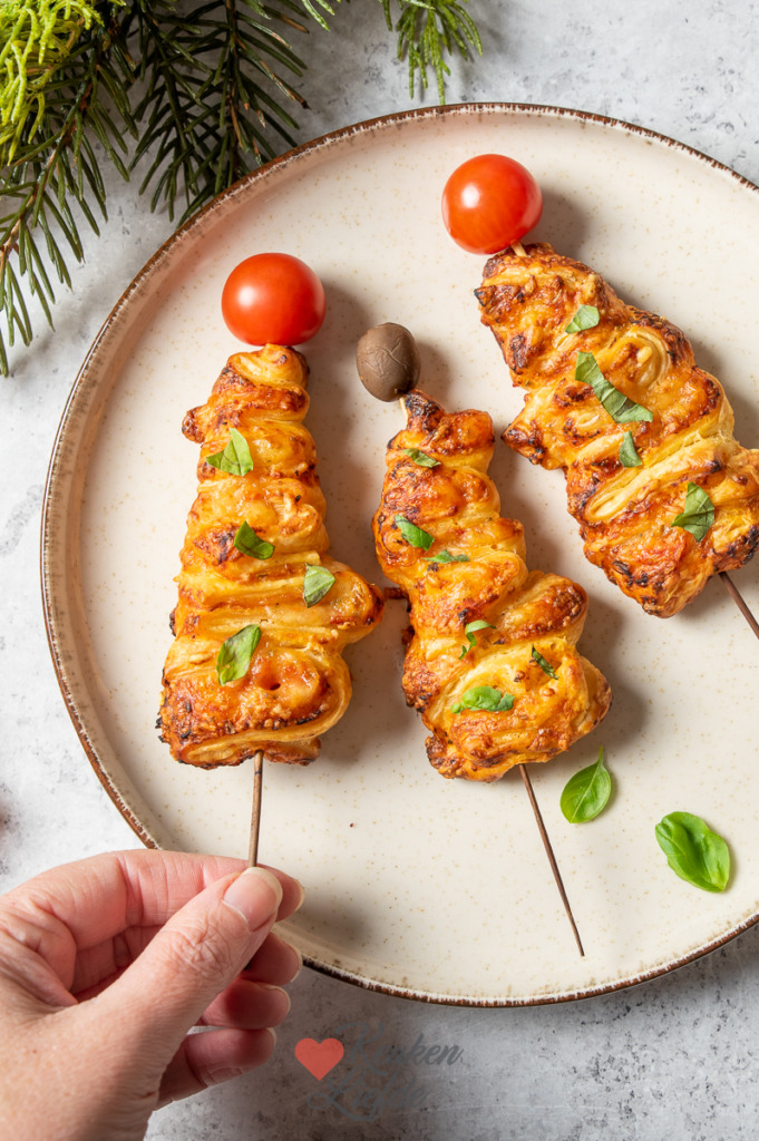 Een simpel en leuk hapje om te serveren met kerst is deze pizza kerstboom op een stokje. Een lekker bladerdeeghapje met pizzasmaak in de vorm van een kerstboom! Hier waren ze zo op dus maak er genoeg. Je kunt ze als hapje vooraf serveren, of serveer bij een lekkere kom verse tomatensoep. Het is handig om ze van tevoren te maken. Voordat je ze wilt serveren hoef je ze alleen even op te warmen in de oven.