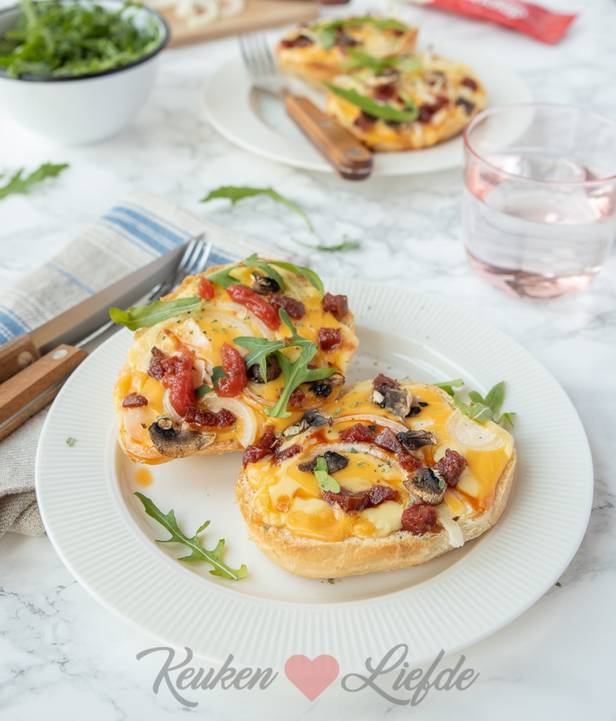 - 2 plakjes (smelt)cheddar, in stukjes gescheurd