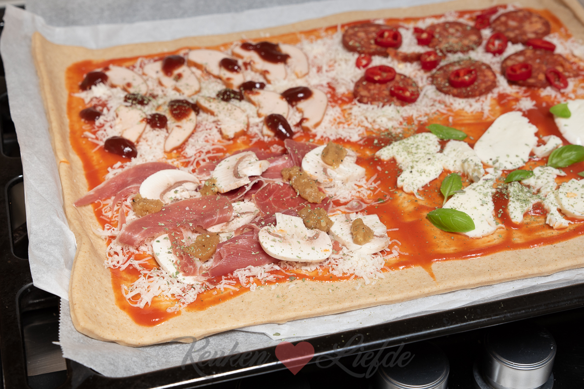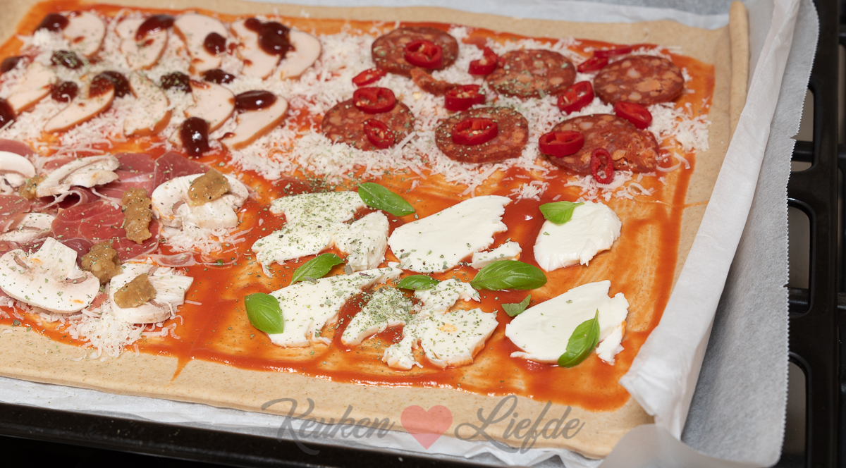 Het is geen geheim dat Johan en ik dol zijn op pizza. Ik heb het dan niet over een pizza van Domino’s of van New York pizza, maar een zelfgemaakte pizza met vers pizzadeeg. Het liefst maak ik het pizzadeeg zelf – dat is echt een fluitje van een cent, bekijk hier mijn video – maar als ik geen tijd heb is een rol vers pizzadeeg uit de supermarkt een prima alternatief.