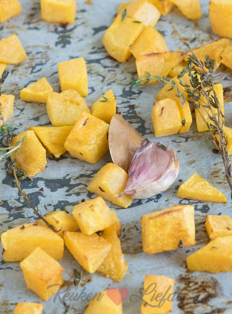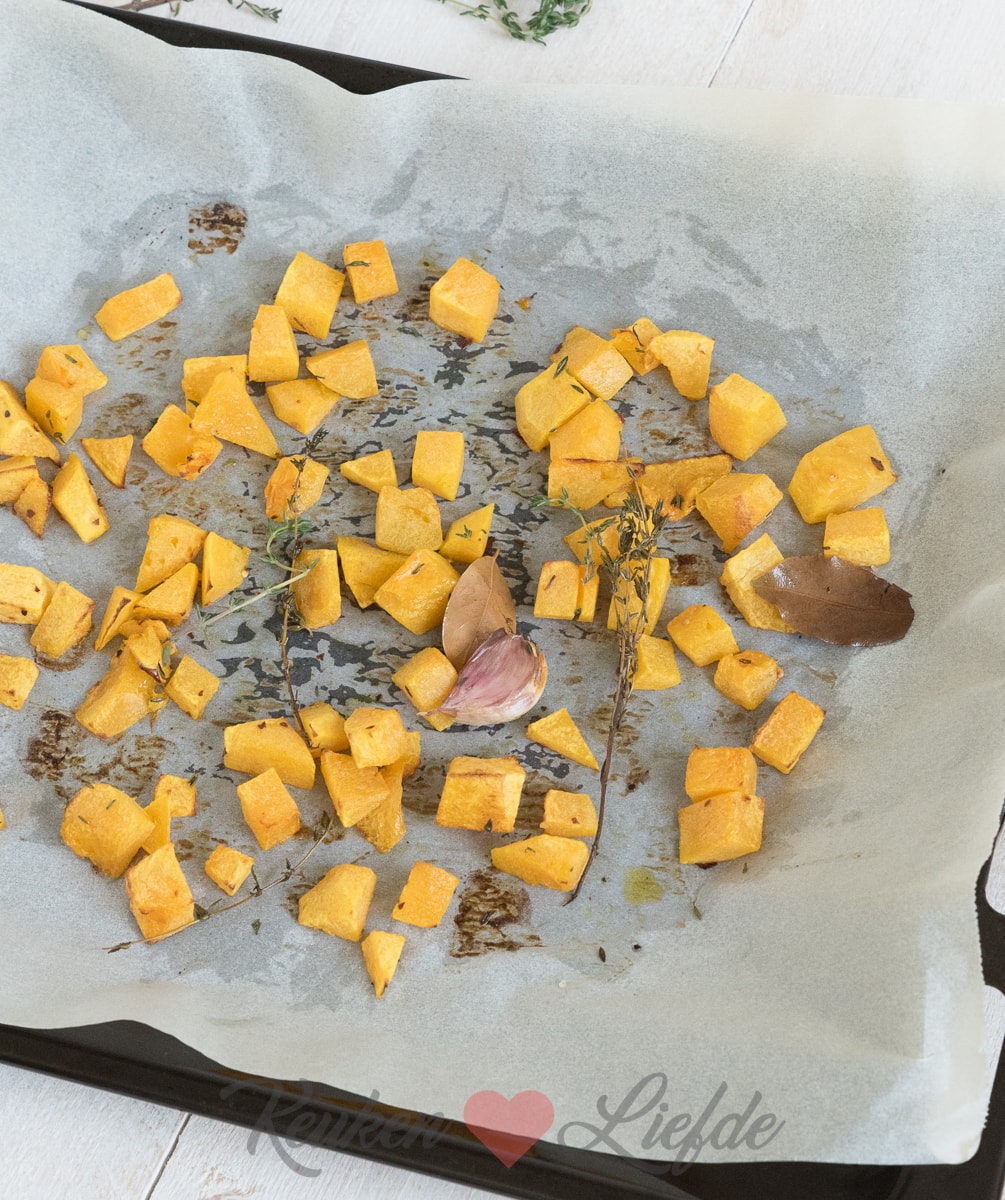 Met pompoen kun je alle kanten op, zowel hartig als zoet. Een van mijn favoriete hartige bereidingen is geroosterde pompoen uit de oven. De smaak wordt dan veel intenser. Door wat smaakmakers toe te voegen zoals knoflook, tijm en laurier geef je de pompoen nog meer smaak. Heerlijk als bijgerecht met gebakken kip of varkensvlees.