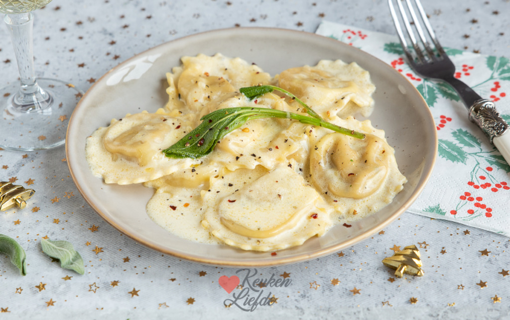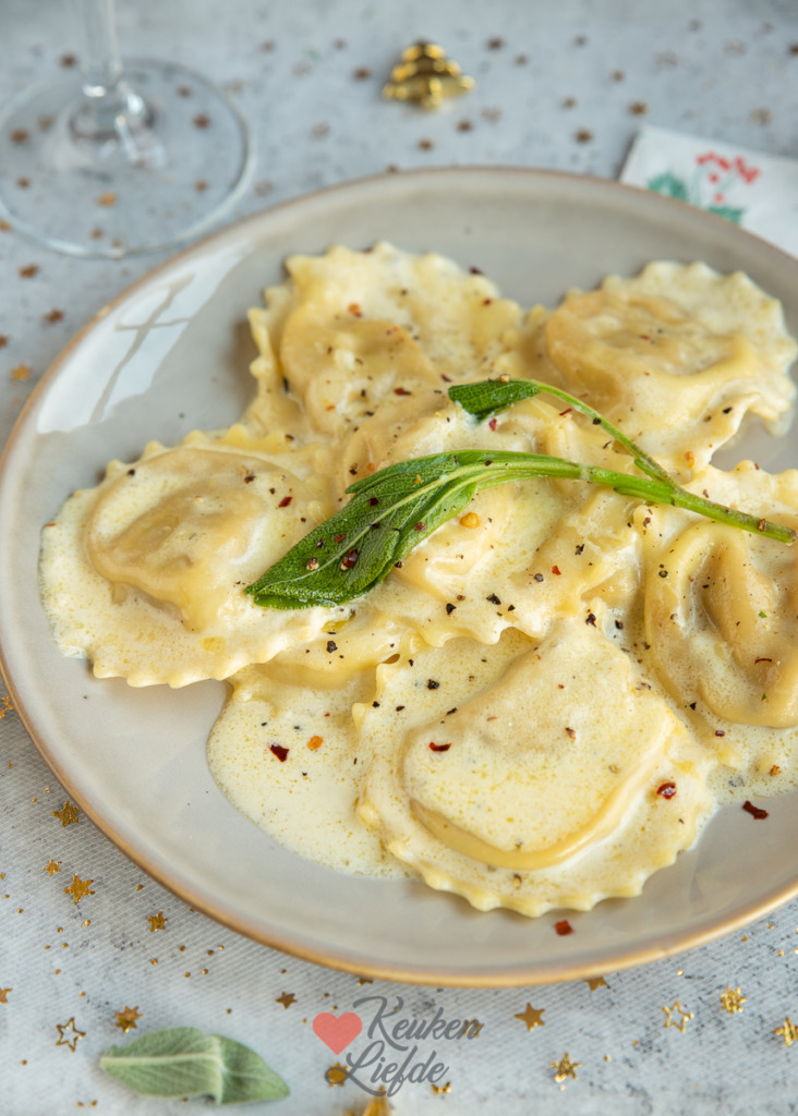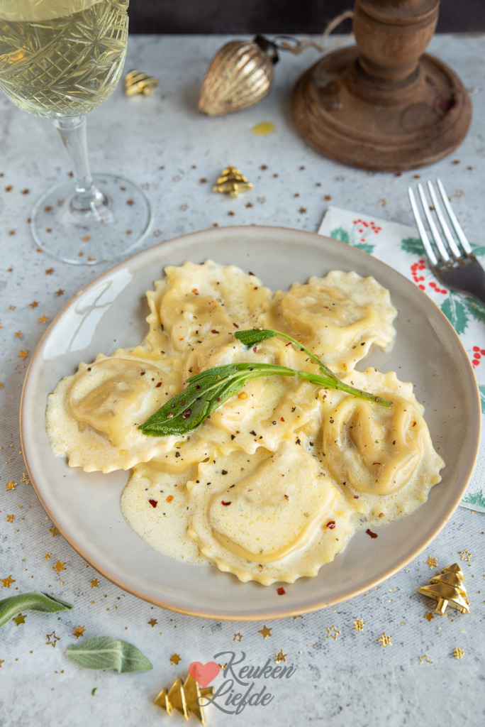 Pompoenravioli met salie-botersaus