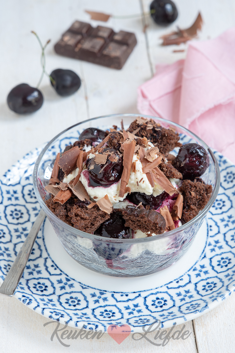 Dit schwarzwalder toetje zet je razendsnel op tafel en is net zo lekker als de bekende taart. De combinatie van chocoladecake, slagroom, kersen en Kirsch (kersenbrandewijn) is onweerstaanbaar.