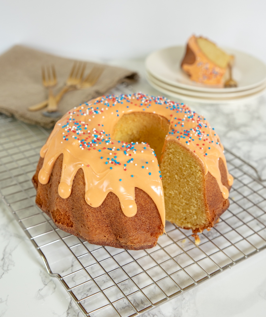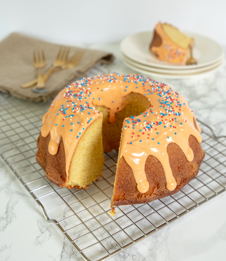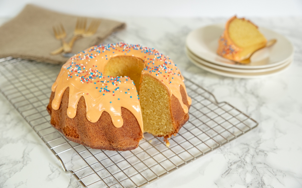 Haal de tulband uit de oven en laat minimaal 40 minuten afkoelen. Stort de tulband op een rooster en laat verder afkoelen.