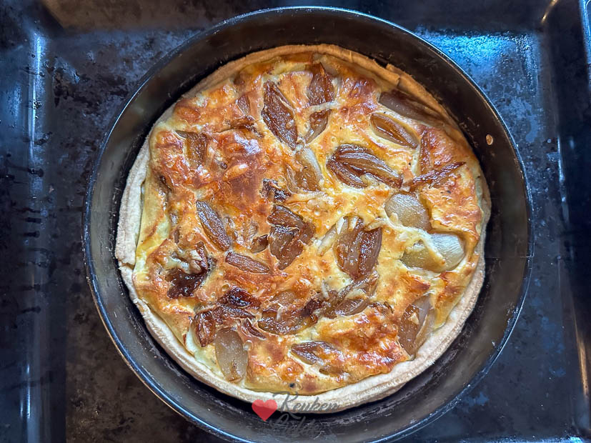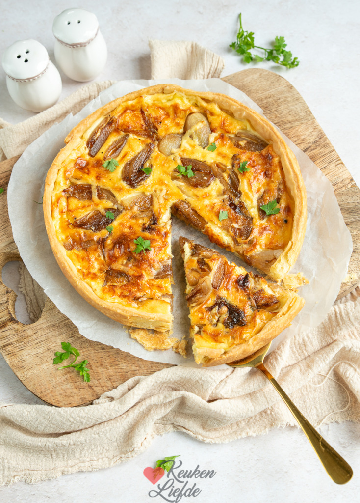 Een heerlijke sjalotten quiche met zelfgemaakt korstdeeg. De sjalotten worden eerst gekarameliseerd waardoor ze een zachte en zoete smaak krijgen. De combinatie van de zoete, gekarameliseerde sjalotten en het krokante, boterige korstdeeg is hemels! Perfect om te serveren als lunch, brunch of diner.