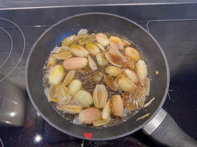 Ik gebruik belegen kaas omdat die pit heeft en lekker romig is. Maar je kunt ook andere kaas gebruiken. Zowel zachte als harde geitenkaas of gruyère combineren ook goed met de gekarameliseerde sjalotten.