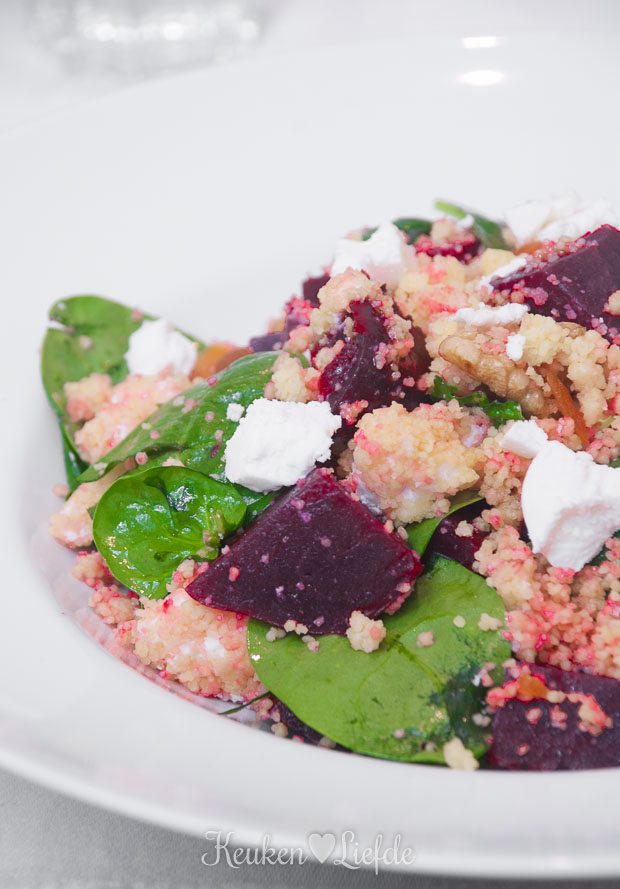 In dit heerlijke couscous recept met bietjes, spinazie, walnoot en geitenkaas mis je het vlees geen seconde. En binnen een kwartiertje zet je hem op tafel. Ideaal voor drukke werkdag als je toch lekker en gezond wilt eten.