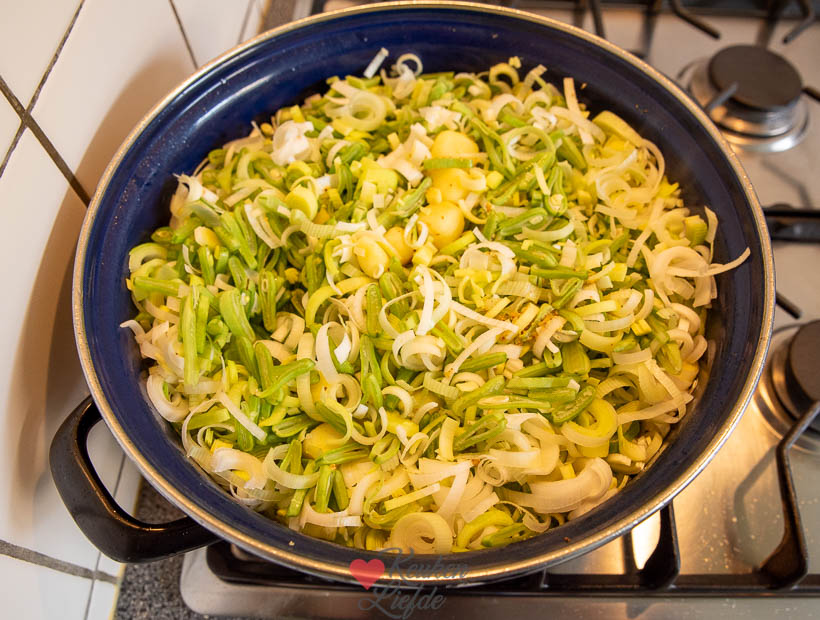 Vandaag gemaakt met prei en snijbonen, hij mag blijven. Wat een fijn recept.