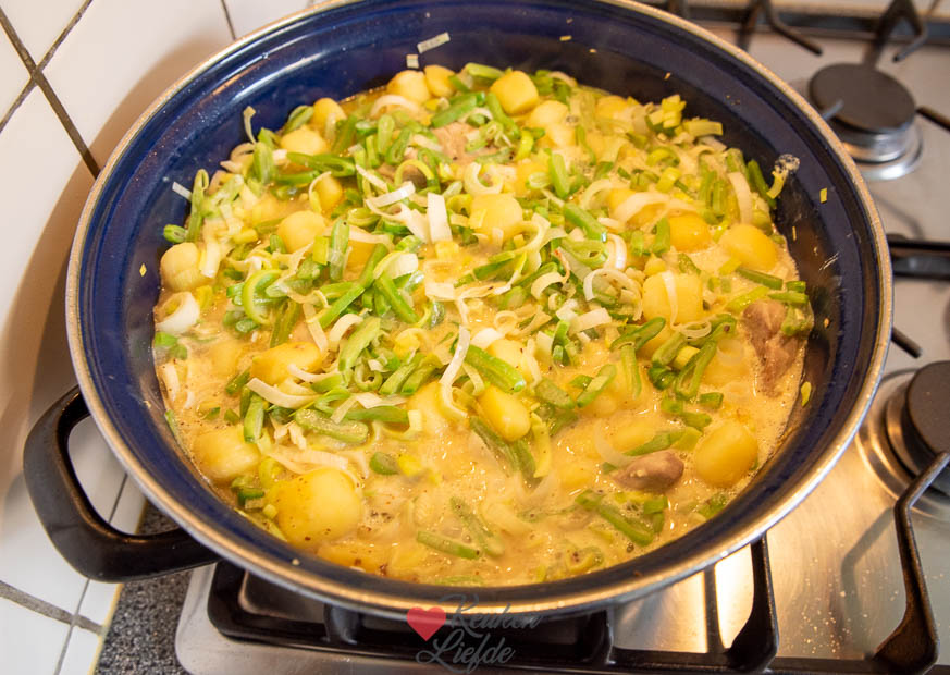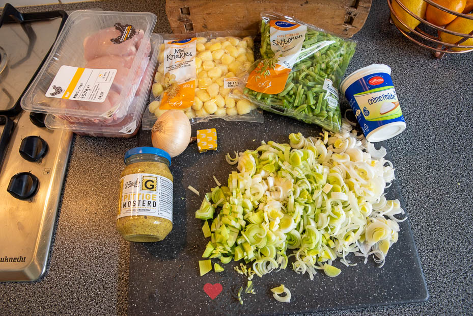 Snelle kipstoof in romige mosterdsaus – Het recept voor deze snelle kipstoof met prei, snijbonen en krieltjes in een romige mosterdsaus is van vriendinnetje Miranda. Het fijne van dit gerecht is dat het een eenpansgerecht is. Makkelijk, lekker en weinig afwas, ik hou ervan!