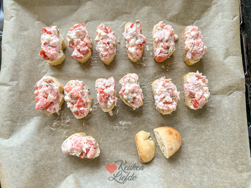 Recepten voor borrelhapjes kun je nooit genoeg hebben toch? Dit stokbrood hapje met tomaat, ham en mozzarella serveer je warm uit de oven. Je maakt hem in minder dan tien minuten tijd en daarna bak je hem nog tien minuten in de oven. Het is een heerlijk warm hapje om te serveren op een verjaardag of feestje, tijdens een filmavondje, of gewoon omdat je er zin in hebt.