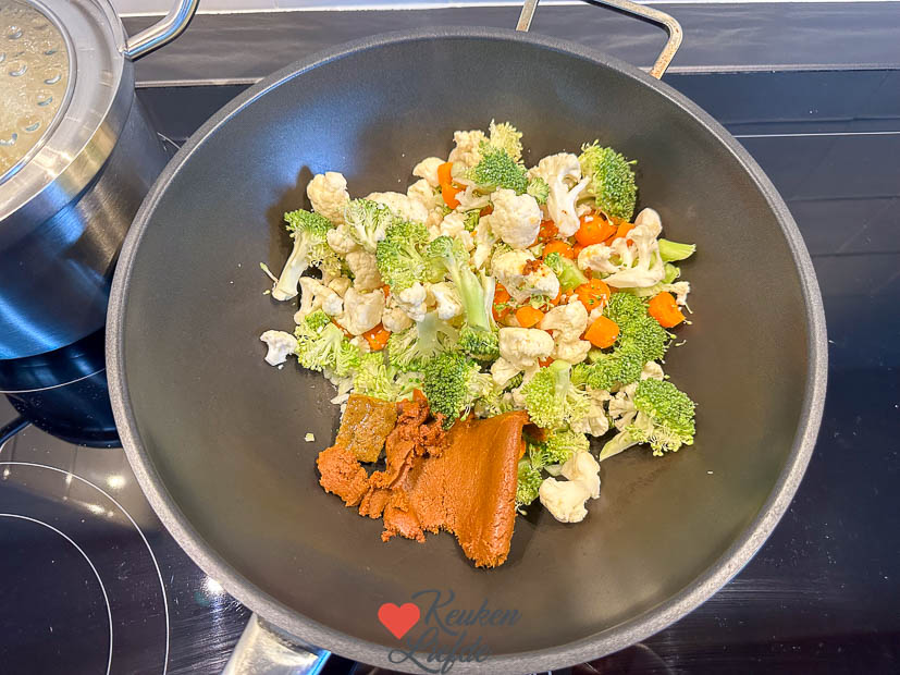 Ik gebruikte de gele currypasta van Blue Elephant omdat ik die in huis had, maar wij vonden deze behoorlijk pittig (ondanks dat we daar toch goed tegen kunnen). Je kunt ook groene of rode Thaise currypasta gebruiken. Mijn favoriet (geen spon!) is de Thaise groene currypasta van Fairtrade Original. Die is lekker zacht en mild met een klein, aangenaam pitje. Zelf experimenteren is het beste. Zo ontdek je je eigen favoriete smaak.