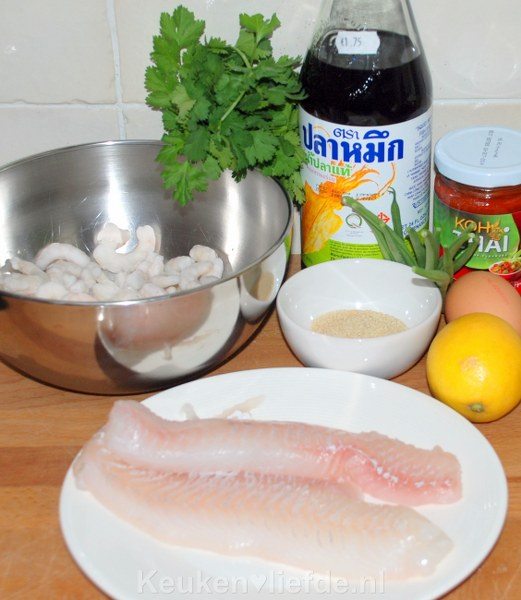 En basterdsuiker vind ik lekkerder dan palm suiker. Ipv haricot verts gebruik ik ook wel eens kousenband. Gebruik voor de witvis eens een kabeljauw haasje en voor de garnalen van die grote tigerprawns uit de diepvries!