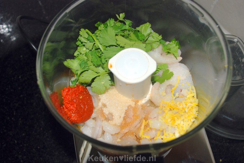 Heerlijk recept! Vervang voor de viskoekjes als het kan de djeroek door een vers blaadje kafir lime.