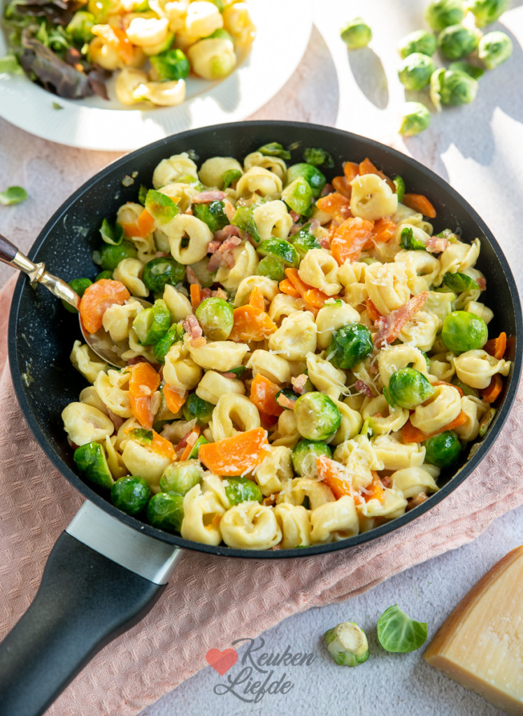 Heel lekker om op deze manier eens spruitjes te eten. Was de creme fraiche vergeten mee te nemen, maar met kruiden roomkaas misschien nog wel lekkerder. 😄😋
