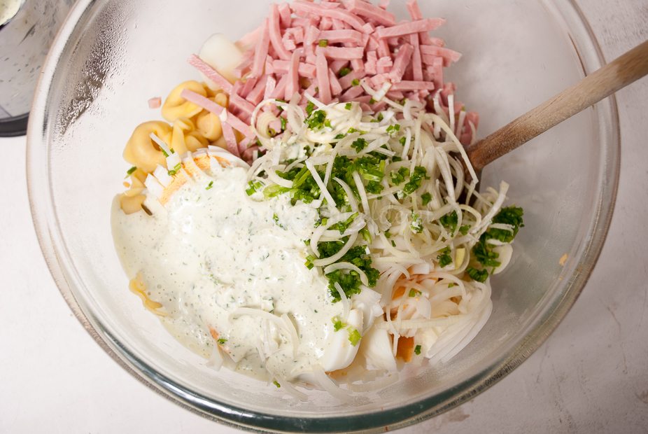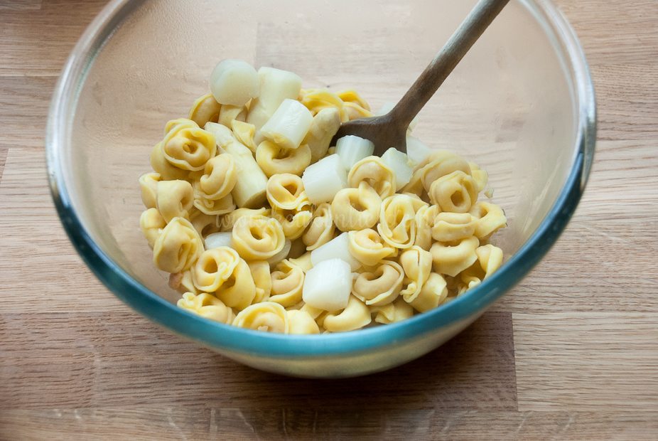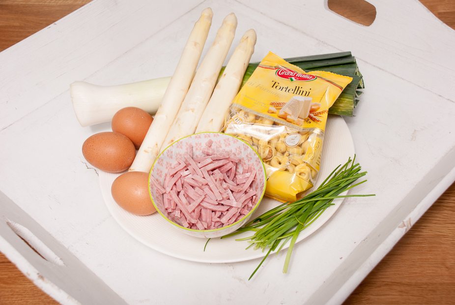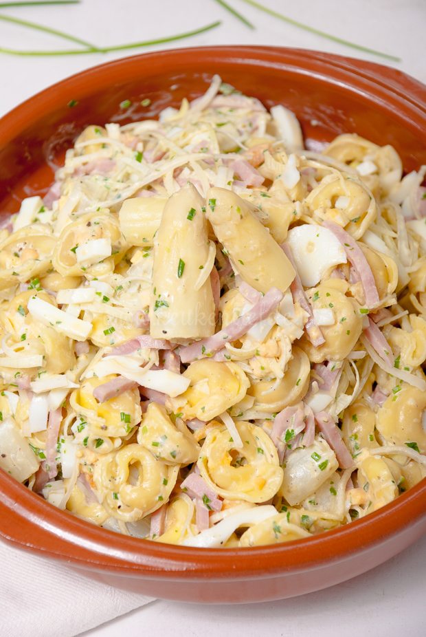 Tortellini salade met asperges – Kaastortellini is echt één van mijn guilty pleasures. In dit recept combineer ik al mijn favoriete smaken van dit moment: kaastortellini, witte asperges, ham, prei en ei. Een smulsalade is geboren!