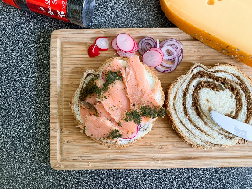 Is het al lunchtijd? Mijn favoriete lunchgerecht is en blijft toch wel de tosti. Deze variant is belegd met onder andere gerookte zalm, radijs en wasabiroomkaas. Echt een heerlijke combi, probeer zelf maar!