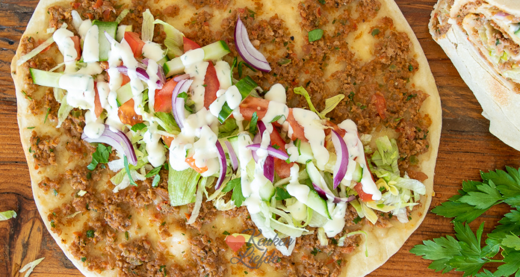 - Rauwkost (ik gebruik fijngesneden ijsbergsla, komkommer, tomaat en rode ui)