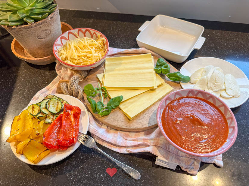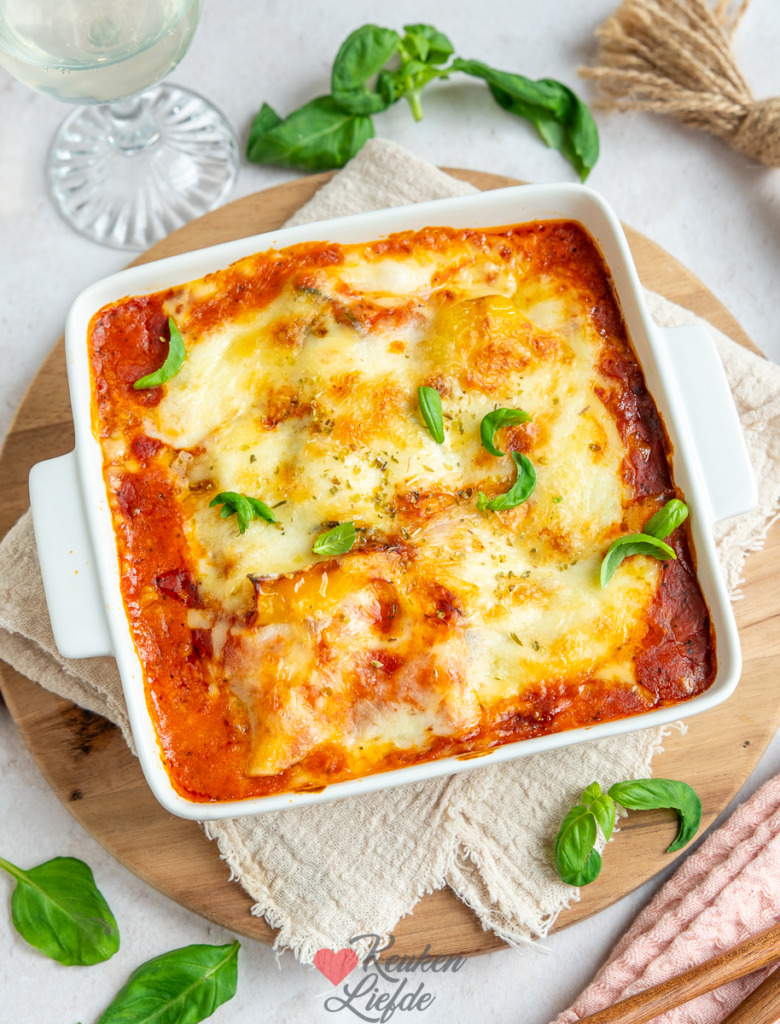 Vegetarische groentelasagne – Heerlijk comfortfood zonder vlees! Deze vegetarische groentelasagne maak je met tomatensaus, gegrilde courgette en paprika en romige mozzarella.
