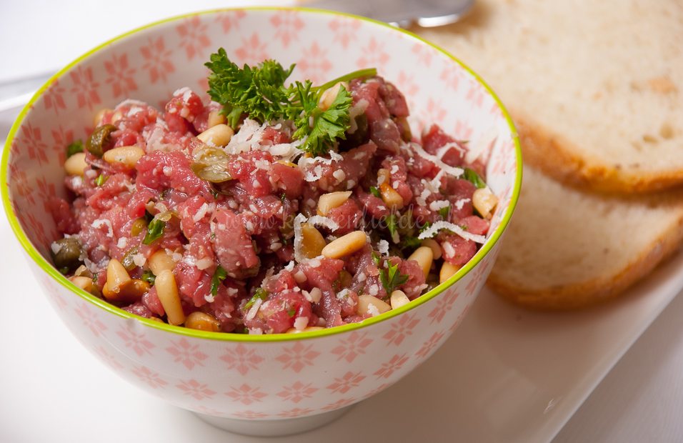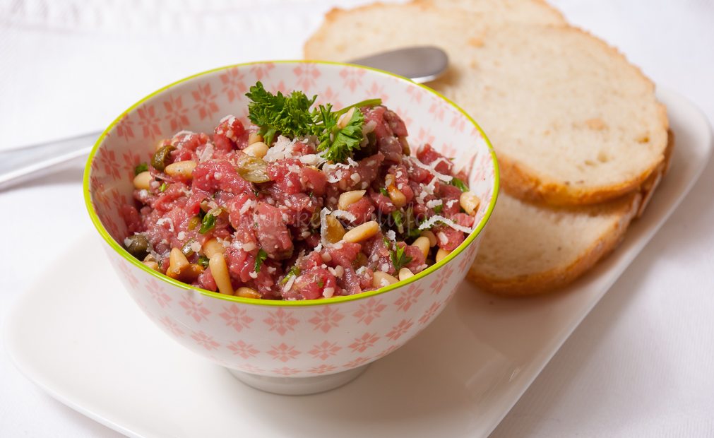 De bakjes biefstuktapenade die je in de winkel koopt hebben vaak een Italiaanse twist door de toegevoegde Parmezaan en pijnboompitjes. Heerlijk vind ik dat. Ik voeg ze dus ook toe aan dit recept samen met wat kappertjes: die geven een zo’n lekker fris zuurtje!