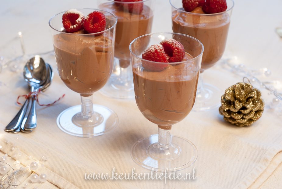 Verdeel de chocolademousse over 6 tot 8 glaasjes en zet weg in de koelkast.