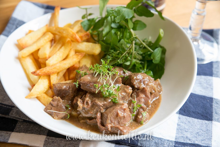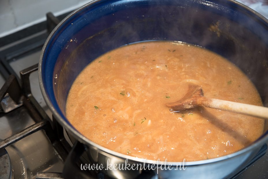 Hoi Femke, de boterhammen vind je naderhand als het stoofvlees zacht is niet meer terug, ze vallen uit elkaar en worden opgenomen door de saus (die daardoor wat dikker en voller van smaak wordt). Mocht je nog wel een stukje brood terugvinden dan roer je die gewoon door de saus tot hij erin oplost. Je hoeft het brood maar aan een kant te besmeren met mosterd. Veel smulplezier en ben benieuwd of hij gesmaakt heeft! 🙂