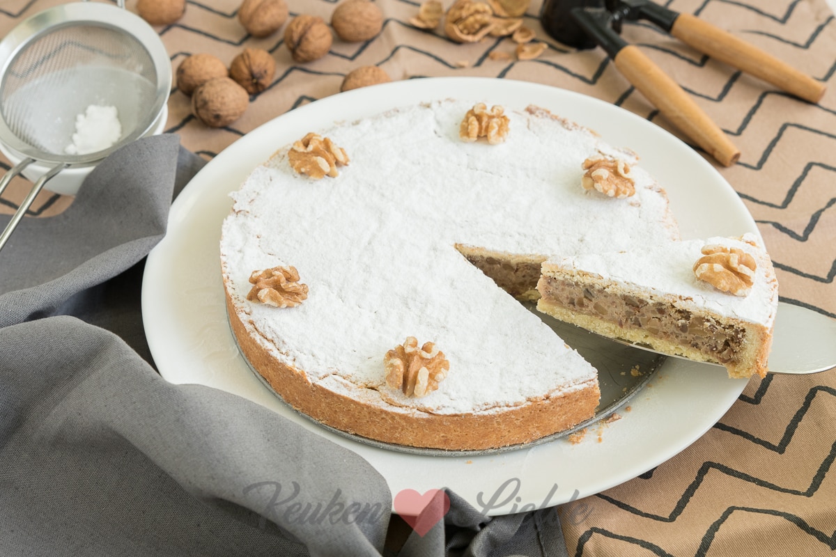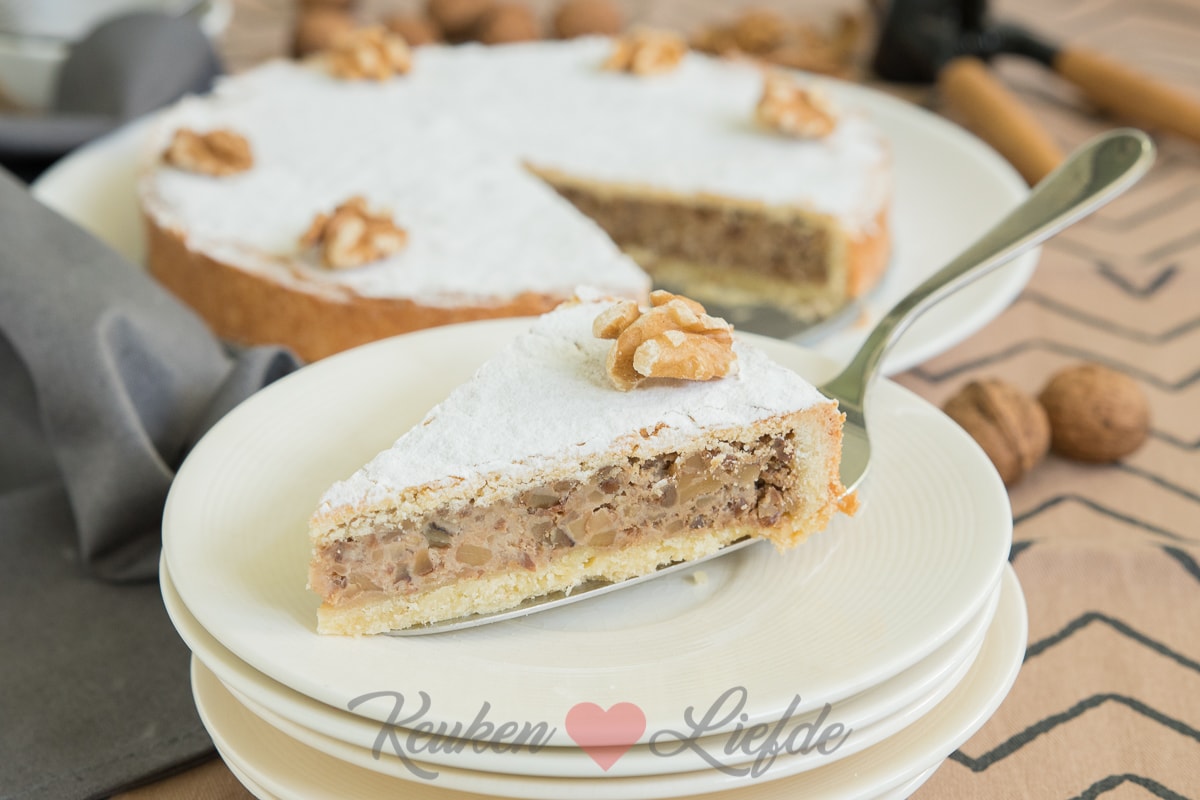 Tijdens onze vakantie vorig jaar in de Dordogne proefde ik voor het eerst een walnotentaart en ik was op slag verliefd op deze lekkernij. Nu wij zelf ook een walnotenboom in onze tuin hebben die elk jaar garant staat voor een overvloedige oogst vond ik het tijd worden om zelf een walnotentaart te bakken. Ik ben blij want het resultaat is net zo lekker als de Franse variant!