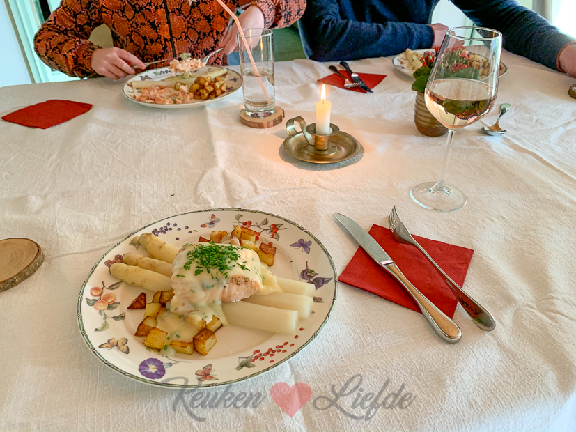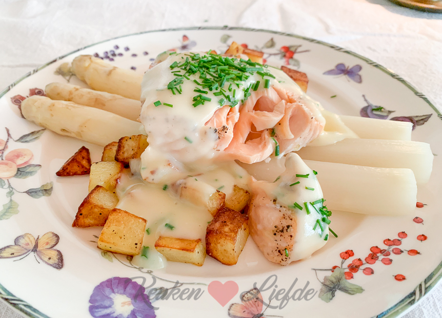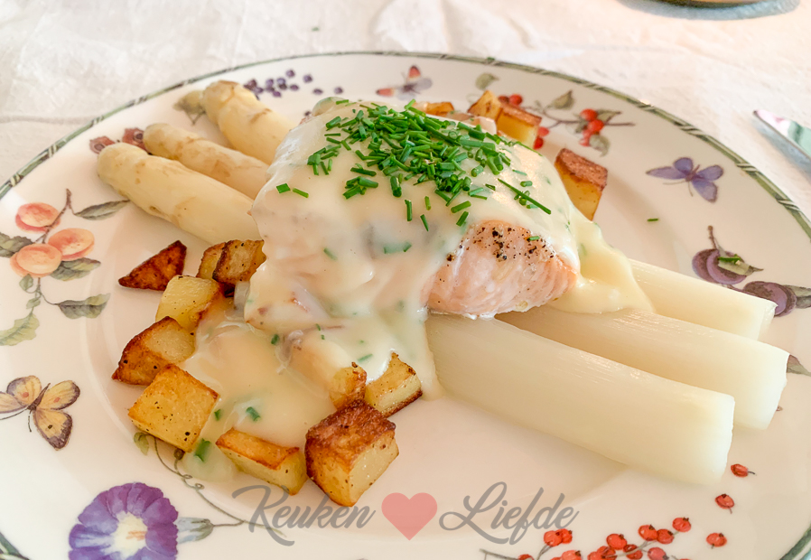 Deze witte asperges met zalm en zelfgemaakte aspergesaus zag je onlangs al voorbij komen in het Kijkje in de keuken. Vervolgens stroomde mijn mailbox vol met de vraag of ik het recept wilde delen. Nu ben ik natuurlijk de beroerdste niet, dus bij deze!