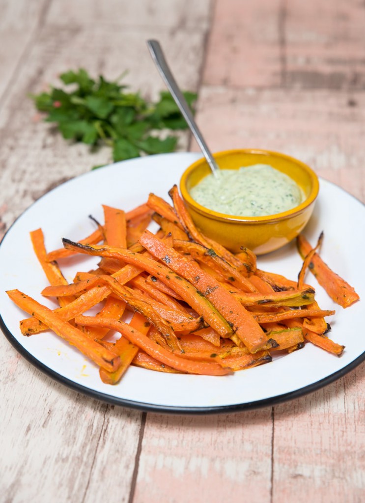 Ik ben dol op groentefriet uit de oven. Het is een heerlijk en gezonder alternatief voor gewone friet en wat mij betreft minstens zo lekker. Onlangs deelde ik al het recept voor knolselderijfriet, vandaag is het tijd voor wortelfriet uit de oven met peterseliemayonaise. Heerlijk om als bijgerecht te serveren met bijvoorbeeld gebakken vis.