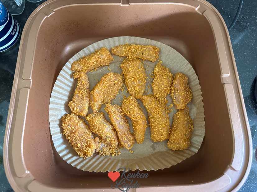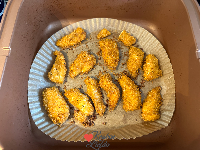 Dezelfde tijd als dat ze in de oven moeten, of tot ze goudbruin en gaar zijn. Elke oven en airfryer werkt weer anders dus altijd even controleren.