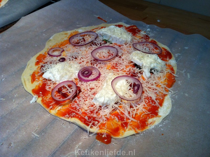 13. Je kunt het pizzadeeg ook “langzaam laten rijzen”. Vaak maak ik het deeg in de ochtend of avond ervoor en zet het dan weg in de koelkast (goed afgedekt met plastic). Voordat je het gaat gebruiken, even uit de koelkast leggen, en je zult zien dat het een perfecte pizza wordt!
