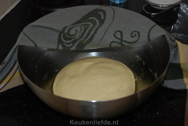 Als de ingrediënten zijn gekneed tot een soepel en elastisch deeg is het tijd om het deeg te laten rijzen. Doe dit op een tochtvrije plek. Bij kamertemperatuur zal het deeg na ongeveer een uur verdubbeld zijn in hoeveeldheid. Is het koud of heel warm in huis dan zal het rijzen langer of korter duren.